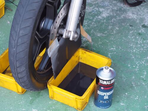 先のショートツーリングでは、どうもフロントフォークが突っ張る感じがするのと、段差を踏んだ時にばたついて、随分と硬いような気がした。中古で買ってきたフロントフォークをとりあえずとってつけた状態なので、内部の状態はさっぱりわからない。 オイルシ…